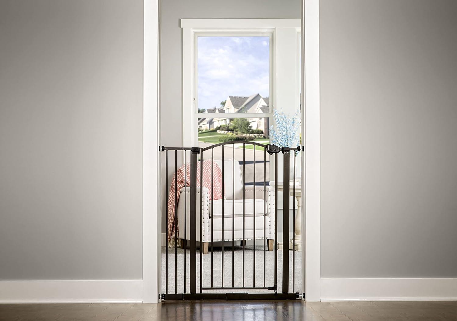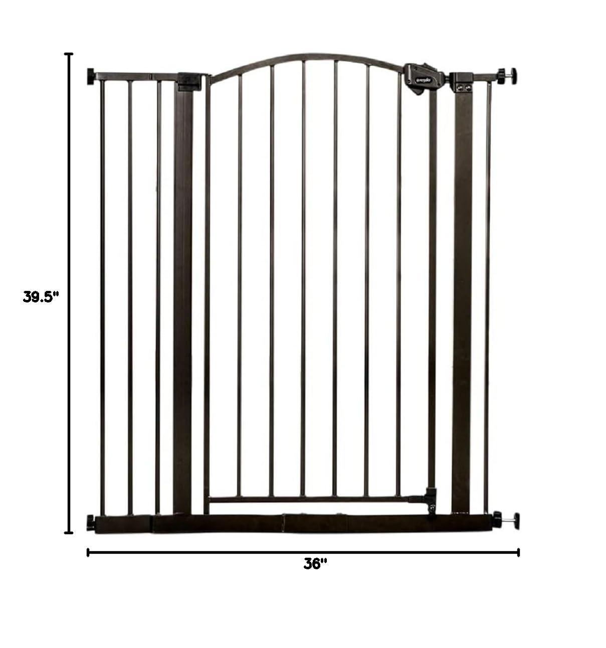 The moment your baby becomes mobile or begins climbing, a baby gate becomes an essential tool in your home. With both design and functionality in mind, the Regalo Extra Tall Arched Décor Safety Gate is a safe and convenient way to protect both your child and home. Equipped with an all-steel construction, this attractive safety gate is adjustable to accommodate door openings between 29-39.5”. If you are worried about your child climbing, the gate is extra tall at 36” high. The extra tall baby gate can be installed via pressure mount with the included rubberized tension knobs or use the included hardware to attach the gate to your wall.