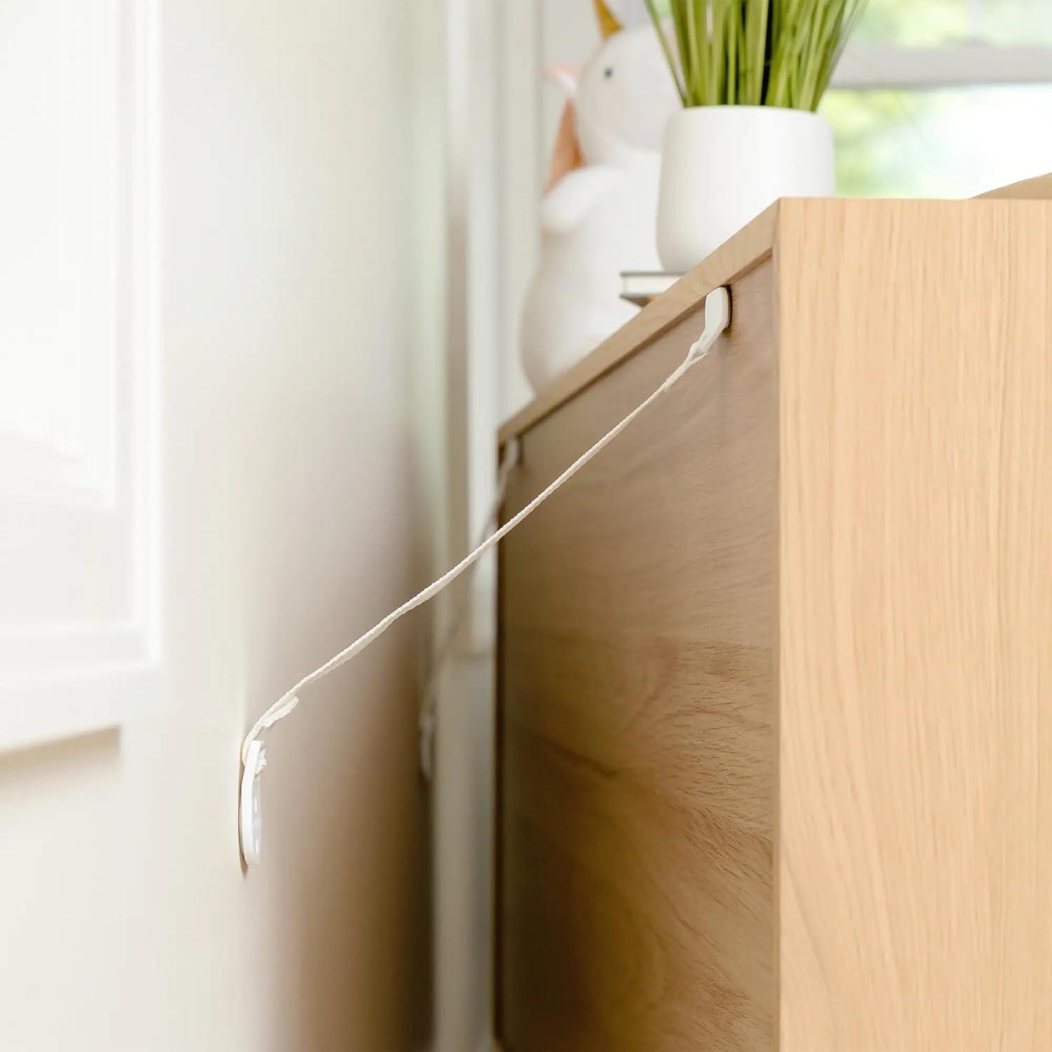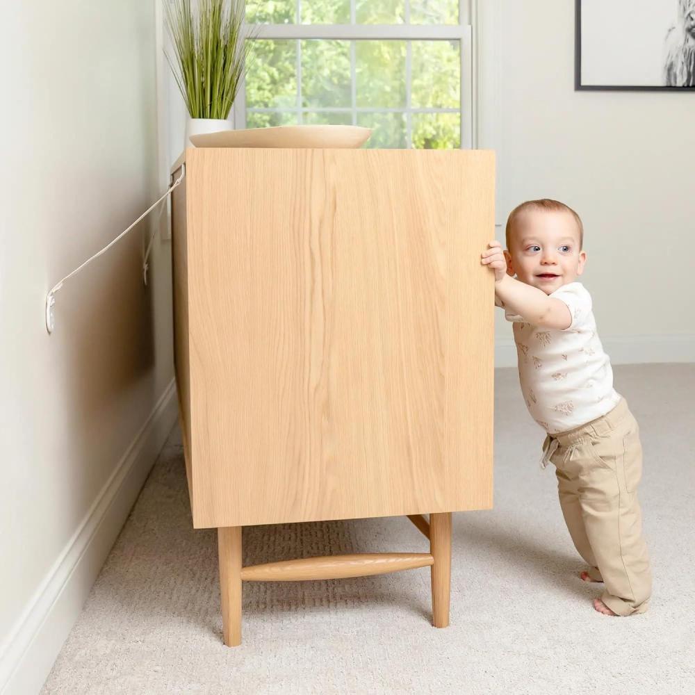 STRONG WALL ANCHOR SYSTEM: Durable furniture safety straps connect furniture securely to the wall to reduce the risk of dangerous tip-over accidents.
